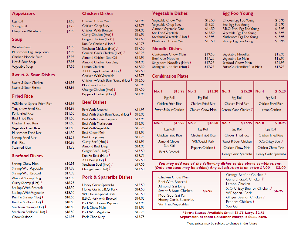 Wing Fu Restaurant Menu